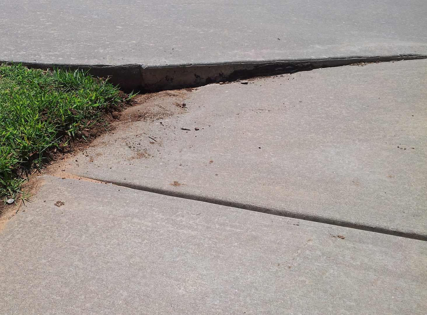 Although settling may occur for many reasons, most settling is a direct result from ground movement and /or improper compaction prior to pouring the concrete. There are other causes for concrete settling. One would be long periods of drought, that dry out the soils along the concrete edge and allow the concrete to drop. Once this occurs it can not be reversed by watering the soils. Another cause can be our almost continuous earthquakes jiggling the soil. Most of our soil here in Oklahoma is not that stable to begin with. So when you combine an area of questionable compacted fill, with a lot of jiggling, you get concrete movement. Then there are the occasional Oklahoma floods. They can make it clear why sand should not have been placed under your driveway. And we can't leave out the freeze thaw cycle. As the ground freezes and thaws it changes in size. Farther north this problem alone causes people to have to re-level their concrete every few years.